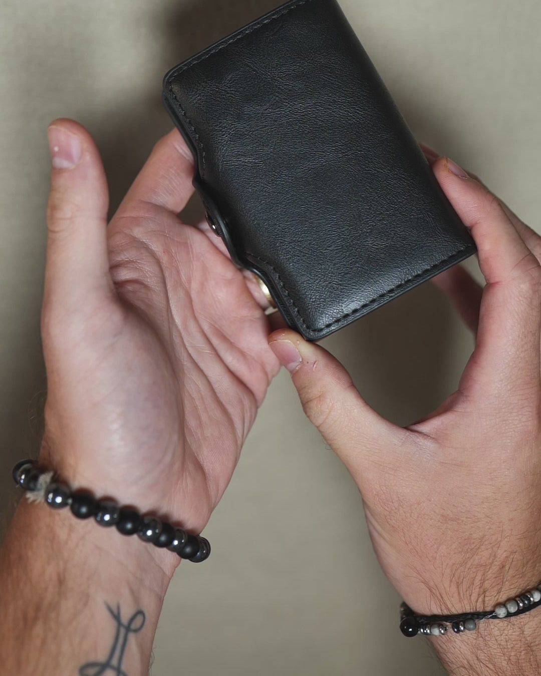 Il portafogli Slim anti-RFID Crawford Design è la fusione perfetta tra eleganza, comodità e sicurezza. Basta portafogli che rovinano banconote e carte. Goditi un accessorio perfetto che dura nel tempo.
